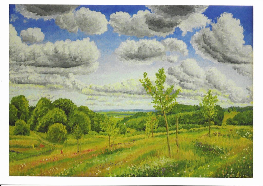 Karte 17: Hennesenberg im März, Bornheim-Brenig; Ölbild von Clemens HillebrandKarte 18: Kirschblüte, Blick vom Hennesenberg auf Bornheim-Brenig im April; Ölbild von Clemens HillebrandKarte 19: Kirschbaummaar, Apfelbacherwiese im Mai, Bornheim-Brenig; Ölbild von Clemens HillebrandKarte 20: Wiesenhang am Hennessenberg im Mai, Bornheim-Brenig; Ölbild von Clemens HillebrandKarte 21: Bad Münstereifel, Basilika; Mezzotinto-Radierung von Clemens HillebrandKarte 22: Blumenfeld an der Zenterstraße, Bornheim-Brenig; Ölbild von Clemens HillebrandKarte 23: Der Neumarkt in Köln; Ölbild von Clemens HillebrandKarte 24: Bad Münstereifel, Erftbrücken; Aquatinta-Radierung von Clemens Hillebrand